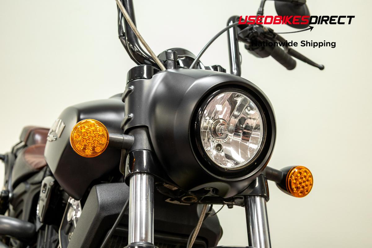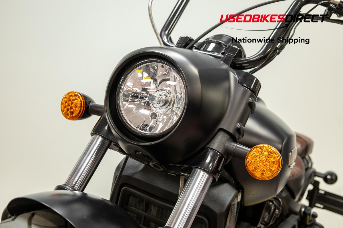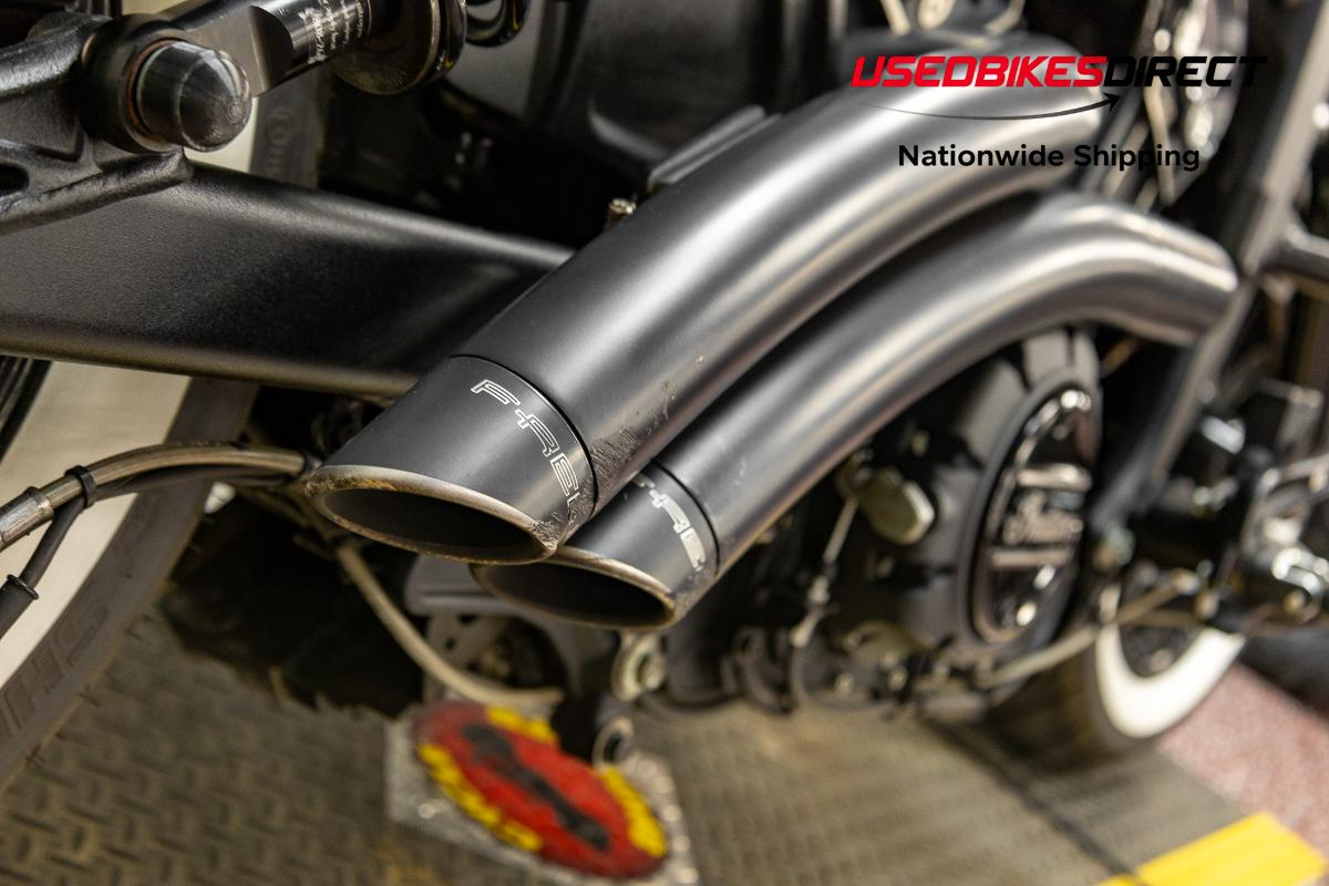 Scrapes present on exhaust. Scratches visible on fuel tank and headlight housing.