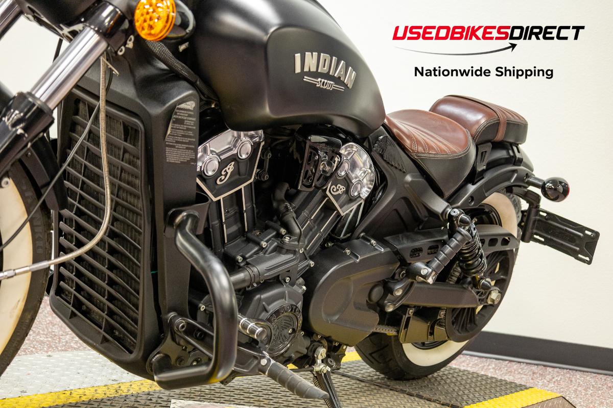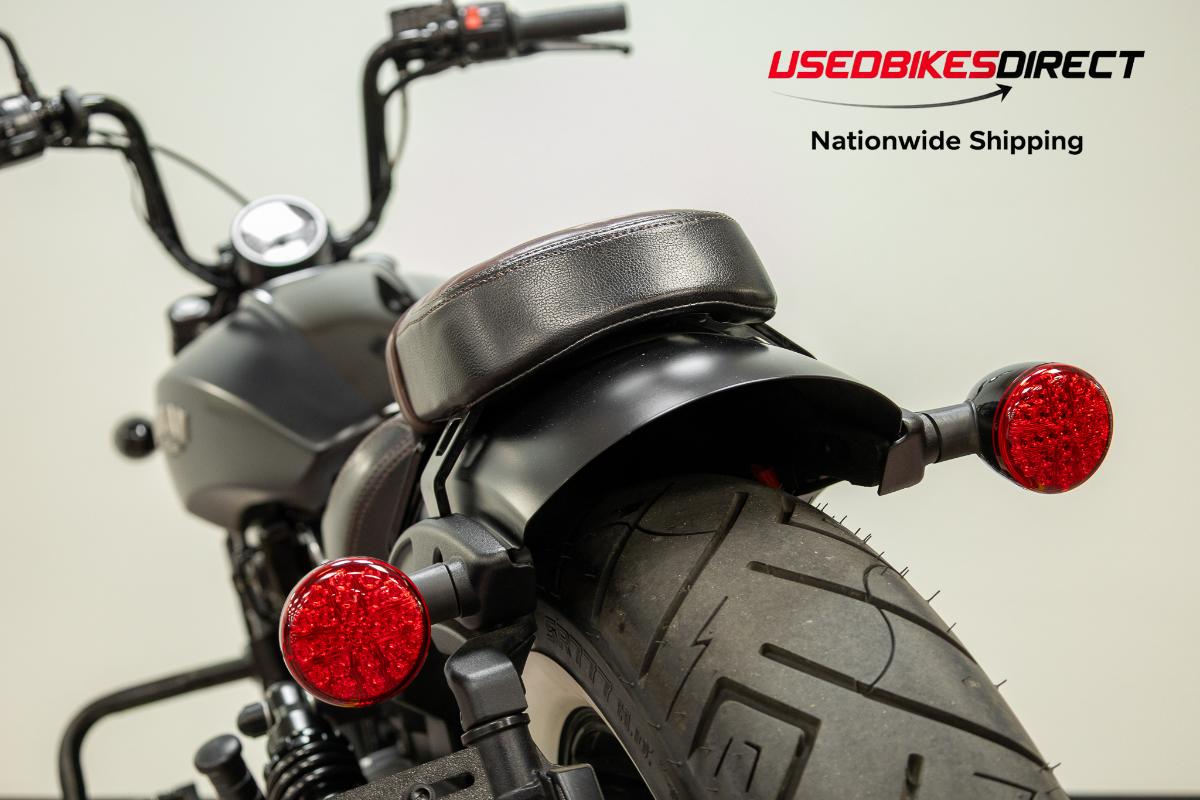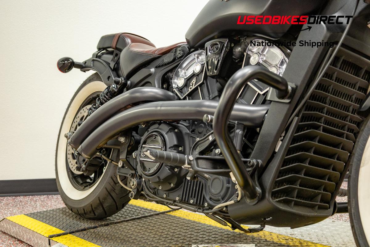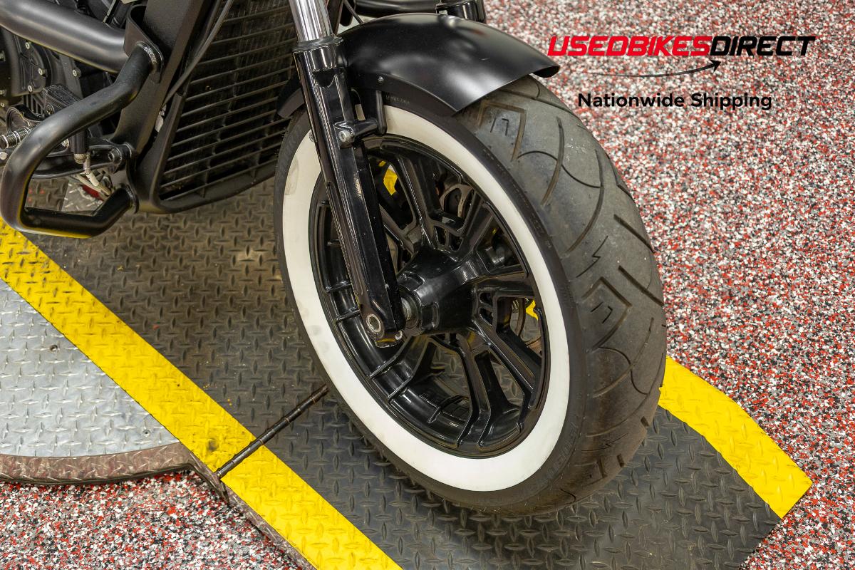 Scrapes present on exhaust. Scratches visible on fuel tank and headlight housing.