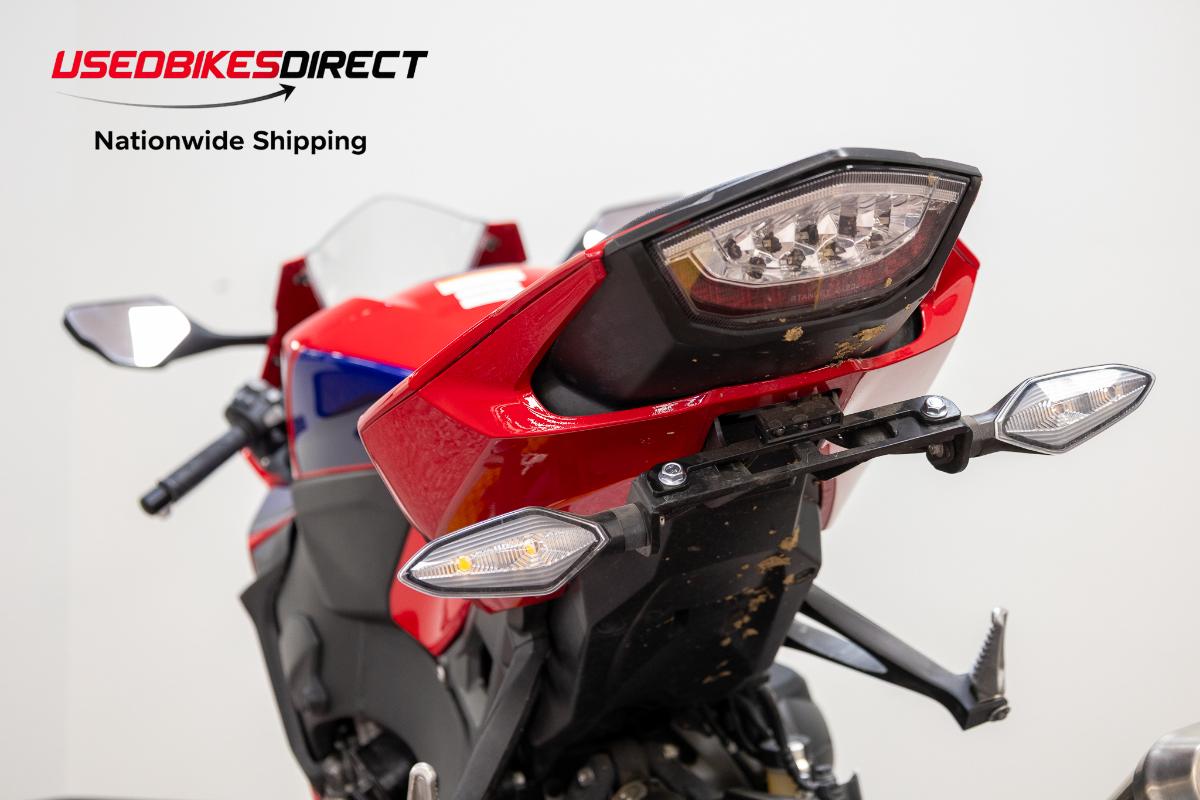 Light scratches present on mirror, exhaust, and rh bar end. Black plastic on tank is faded.